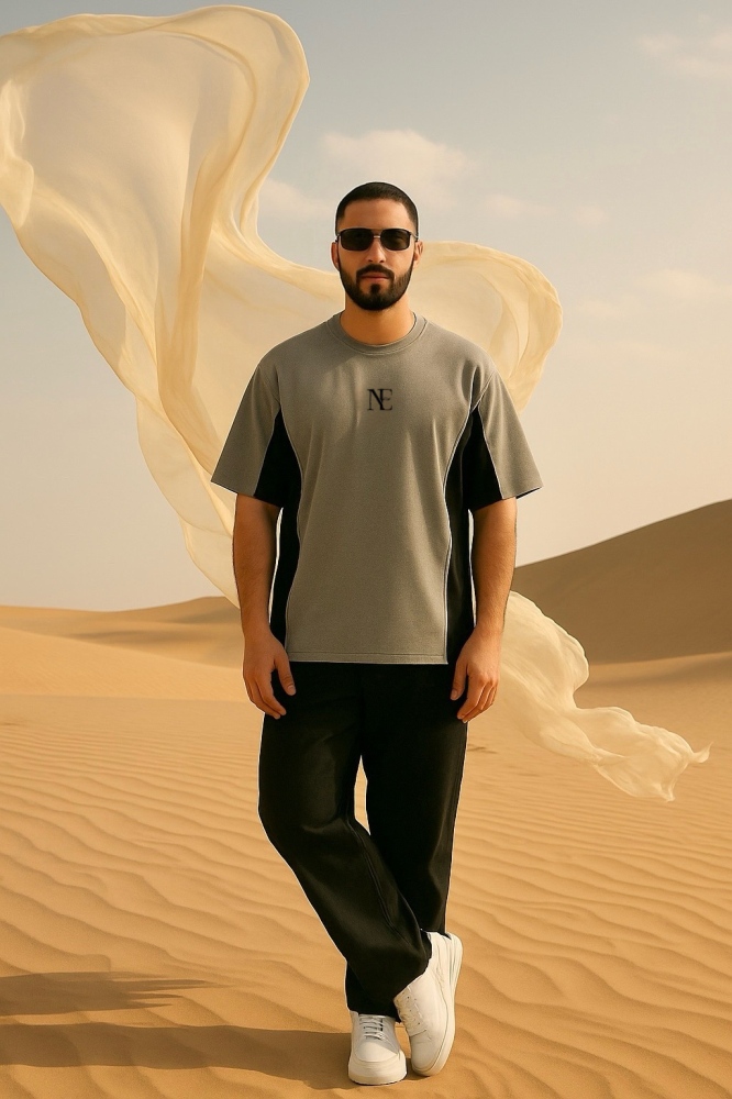 gray and black t-shirt